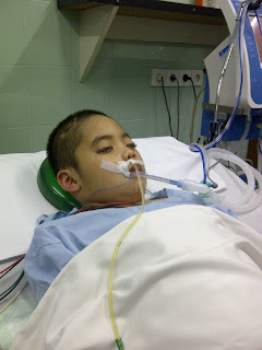 Mata Mbak Tri tergenang air, meski tak ada yang turun. Sama seperti mata saya.  Dan sejak saat itu, Abi belum terbangun. Dokter mengatakan harusnya 1x24 jam dia sudah bangun. Tumor berhasil diangkat 70%. Masalahnya, Abi belum bangun. Dan secara medis mereka tidak tahu penyebabnya. Lalu apa yang bisa mereka lakukan? Berusaha mempertahankan hidup Abi.